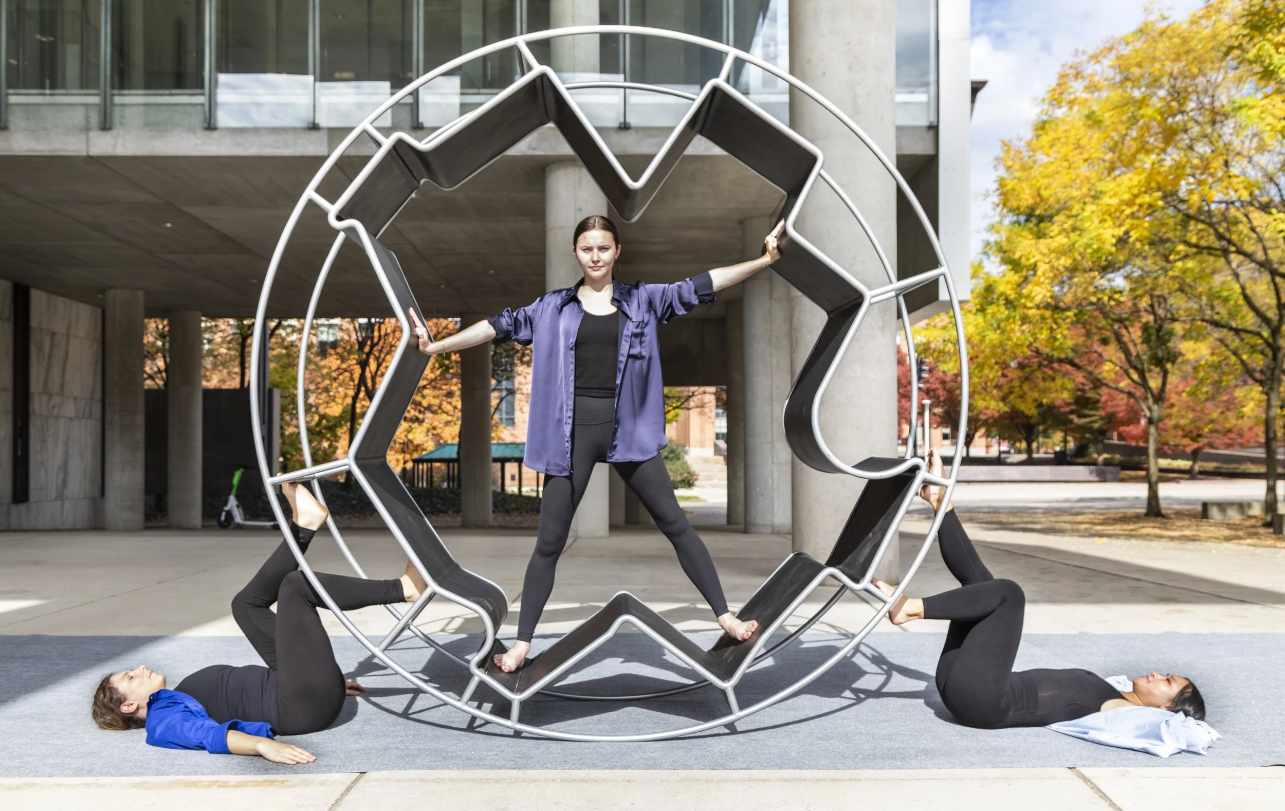 The human body is the essential component of ZERO.GRAVITY, long conceived within the ideological and geometric constraints of architecture: from the Vitruvian Man drawn within the idealized outlines of circle and a square, the divine reconciliation of the formal and the functional orders of Renaissance humanism, to the Corbusian Modulor conceived from the standards of measure in the twentieth-century modernism, or the universal figure of a disabled body on a wheelchair codified in contemporary building regulations and graphics standards. Here, the body is neither confined nor defined by the circle or the square, the wheel or the chair. The divine circle has been reduced to a skeletal structure, and the square a convoluted vestige of its modern past.